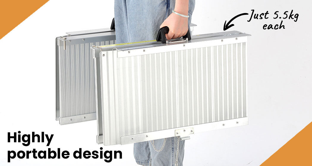 Equipmed Folding Wheelchair Ramps are designed for ease of use and durability. They\'re a smart option to facilitate easy access for wheelchair, mobility scooter and rollator users to overcome steps and kerbs, or for loading into a vehicle.