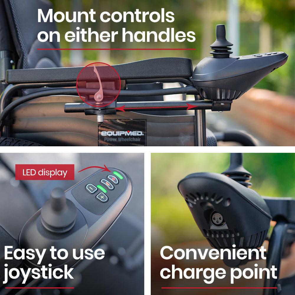 EQUIPMED Electric Wheelchair Folding, Folding, Long Range, Lithium Battery, 24" Rear Wheels, Black